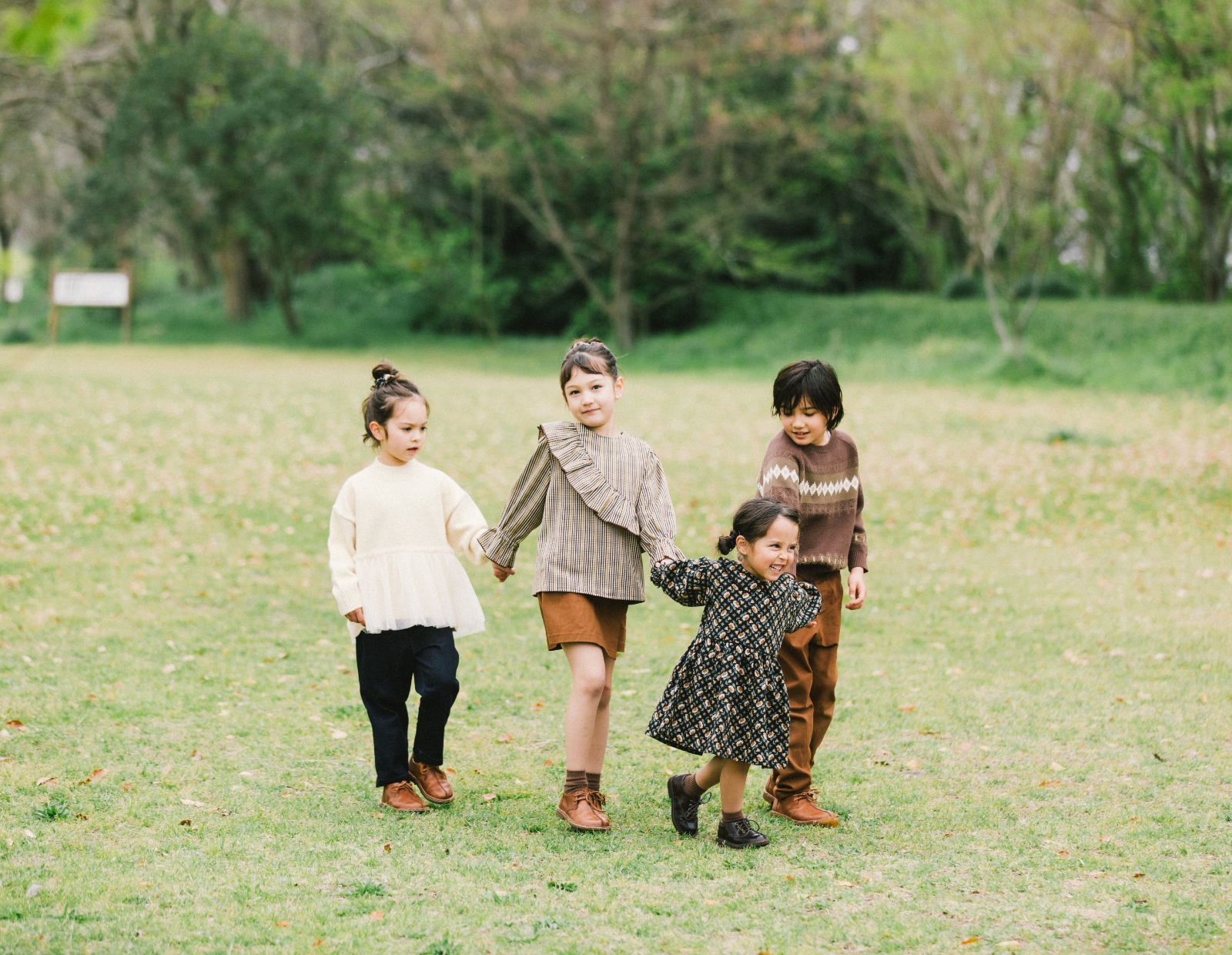私たちは、子どもたちの自由な感性を大切にしながら、おうちの方が安心できる「上品さ」と「着心地のよさ」を兼ね備えた服づくりを行っています。